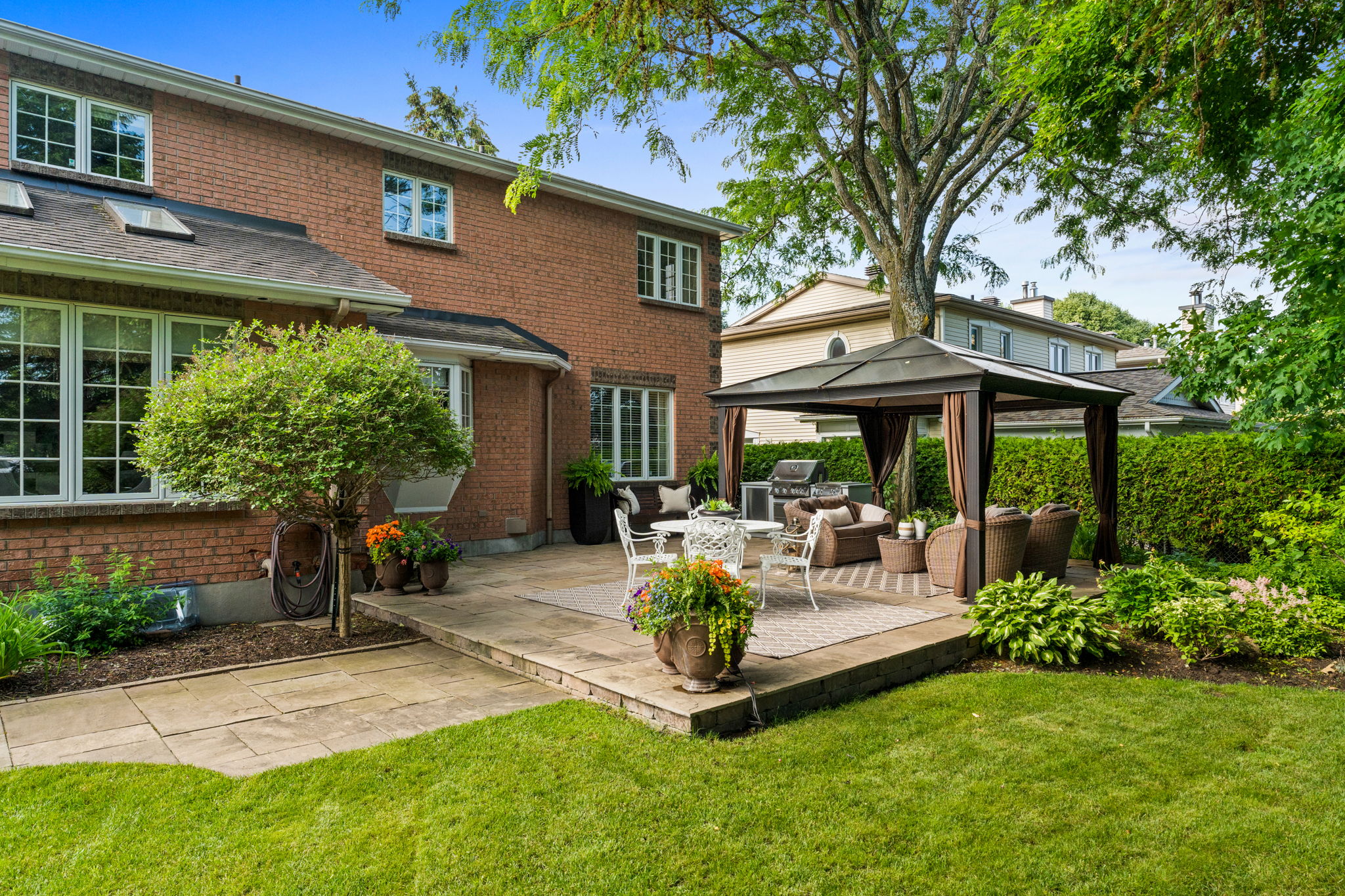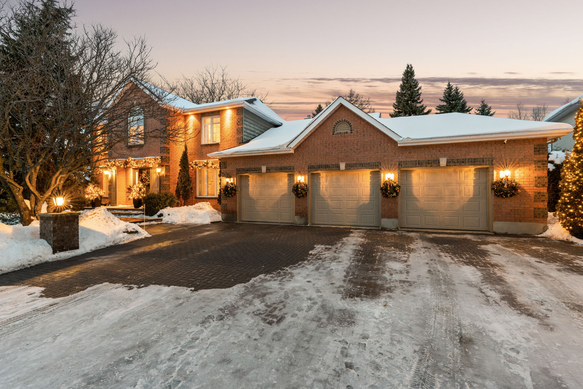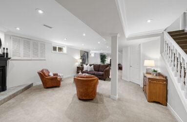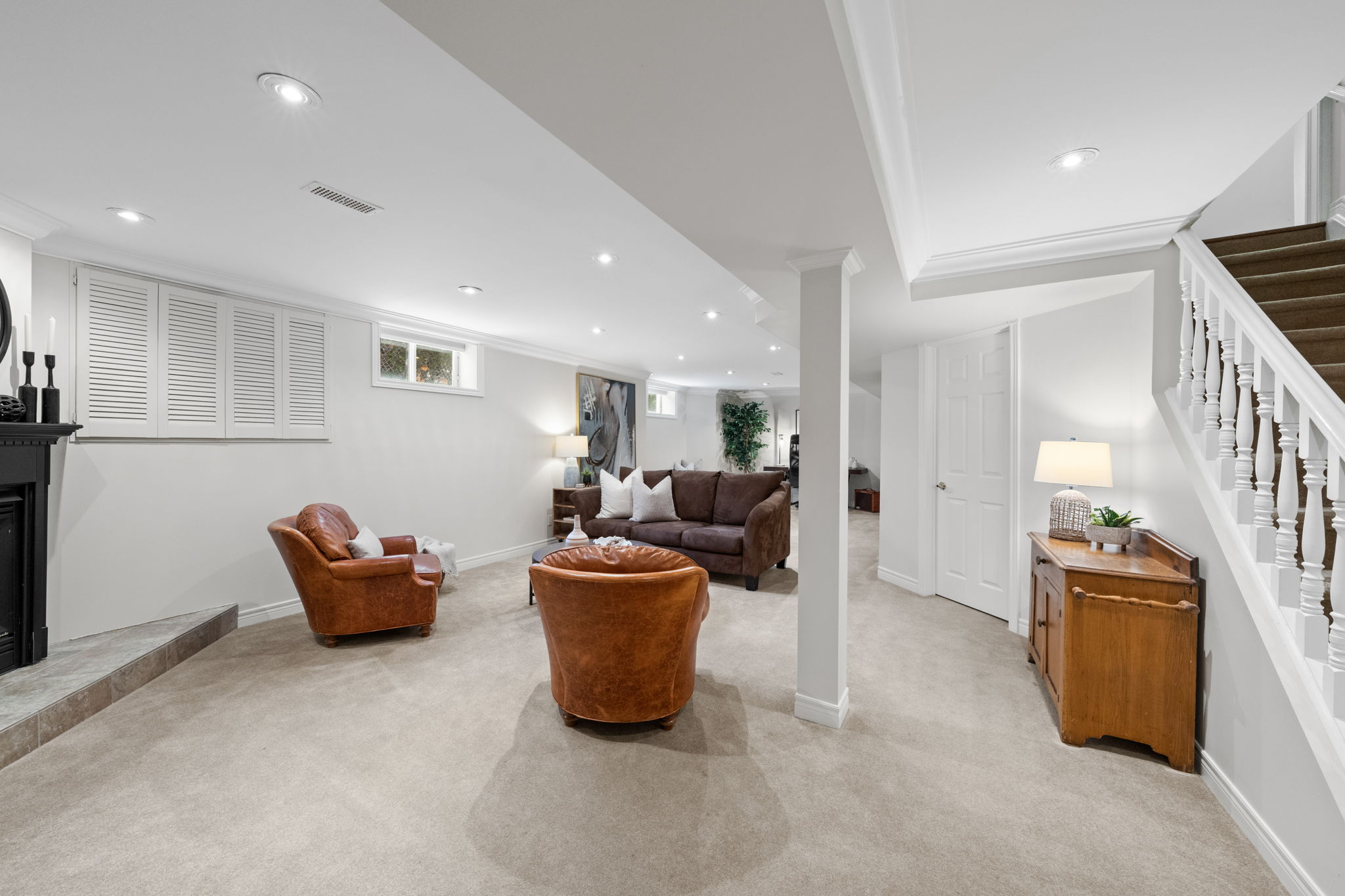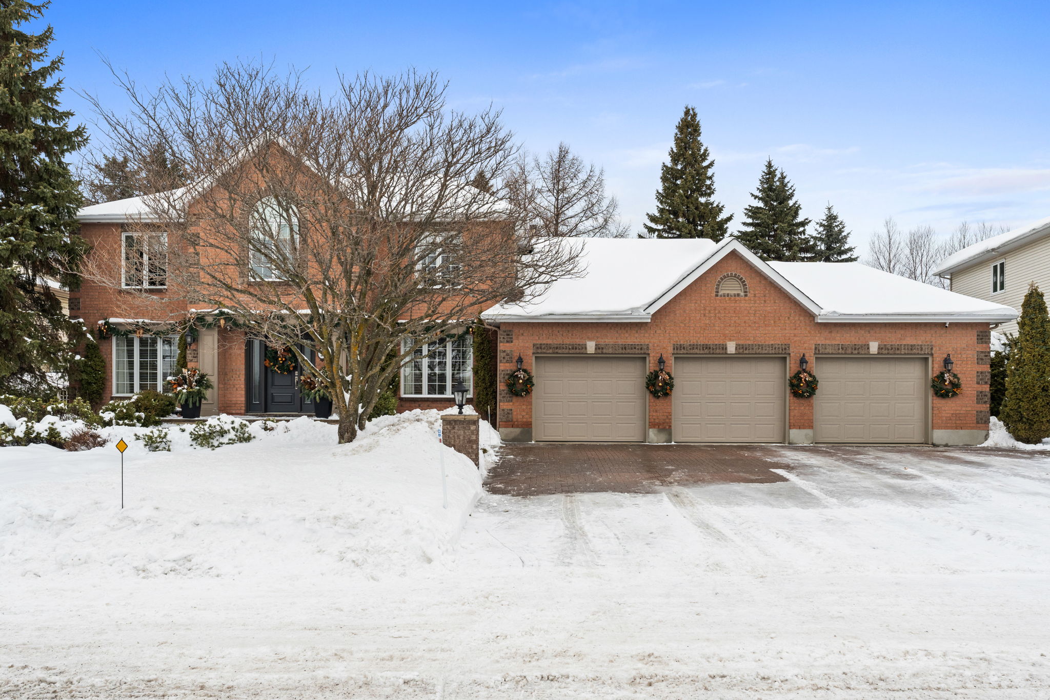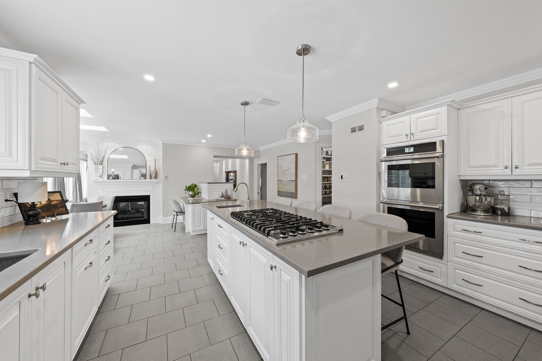 Upon entry, you are welcomed by a stunning hardwood staircase & a classic cross-hall design, unveiling a gracious den, formal living room, & intimate dining room accented by French doors-perfectly curated for both entertaining & everyday living. The heart of the home showcases a spectacular chef’s kitchen featuring an oversized island, premium appliances, & an impressive walk-in pantry. The adjoining breakfast area is warmed by a striking double-sided fireplace & provides seamless access to the breathtaking backyard oasis, creating an effortless flow for indoor-outdoor living. Just off the kitchen, the beautifully appointed great room is inundated with natural light, offering a welcoming space to unwind or entertain family & friends. A highly functional mudroom and laundry area feature expansive quartz countertops, abundant storage, & a full refrigerator & freezer, leading seamlessly to the impressive three-bay garage complete with newly epoxied floors and fresh paint.The upper level offers three generously proportioned bedrooms & a serene primary suite retreat, highlighted by a luxurious ensuite featuring a custom oversized shower and freestanding soaker tub-designed to deliver a spa-inspired experience. A beautifully renovated main bathroom completes this level, blending timeless style with custom finishes. The thoughtfully finished lower level features a welcoming family room centred around a cozy gas fireplace, an additional bedroom, a newly renovated bathroom, & abundant storage-creating a versatile and refined space, perfect for guests or an in-law suite.
