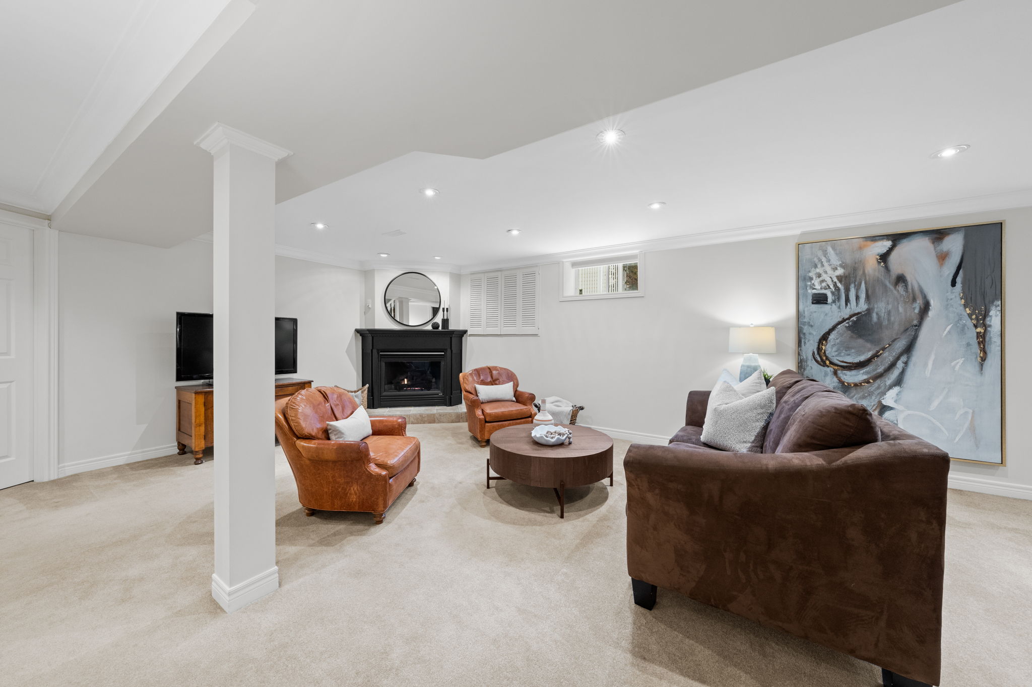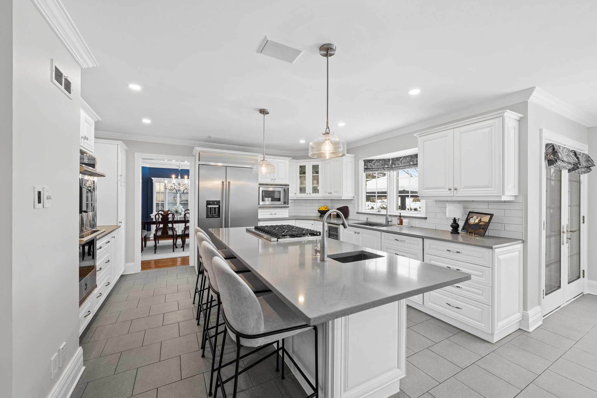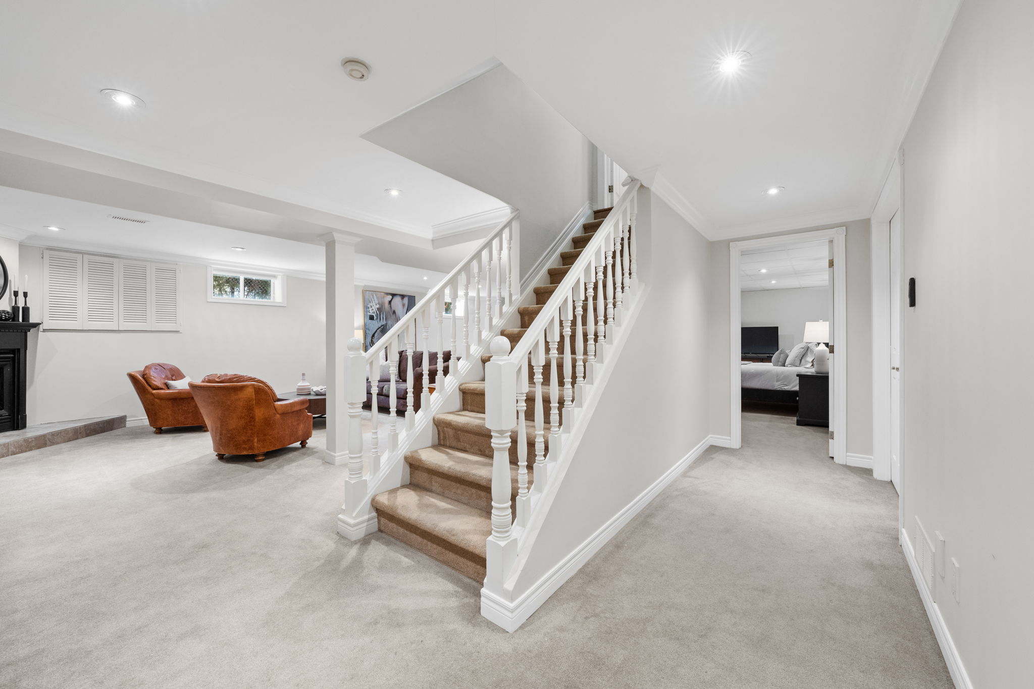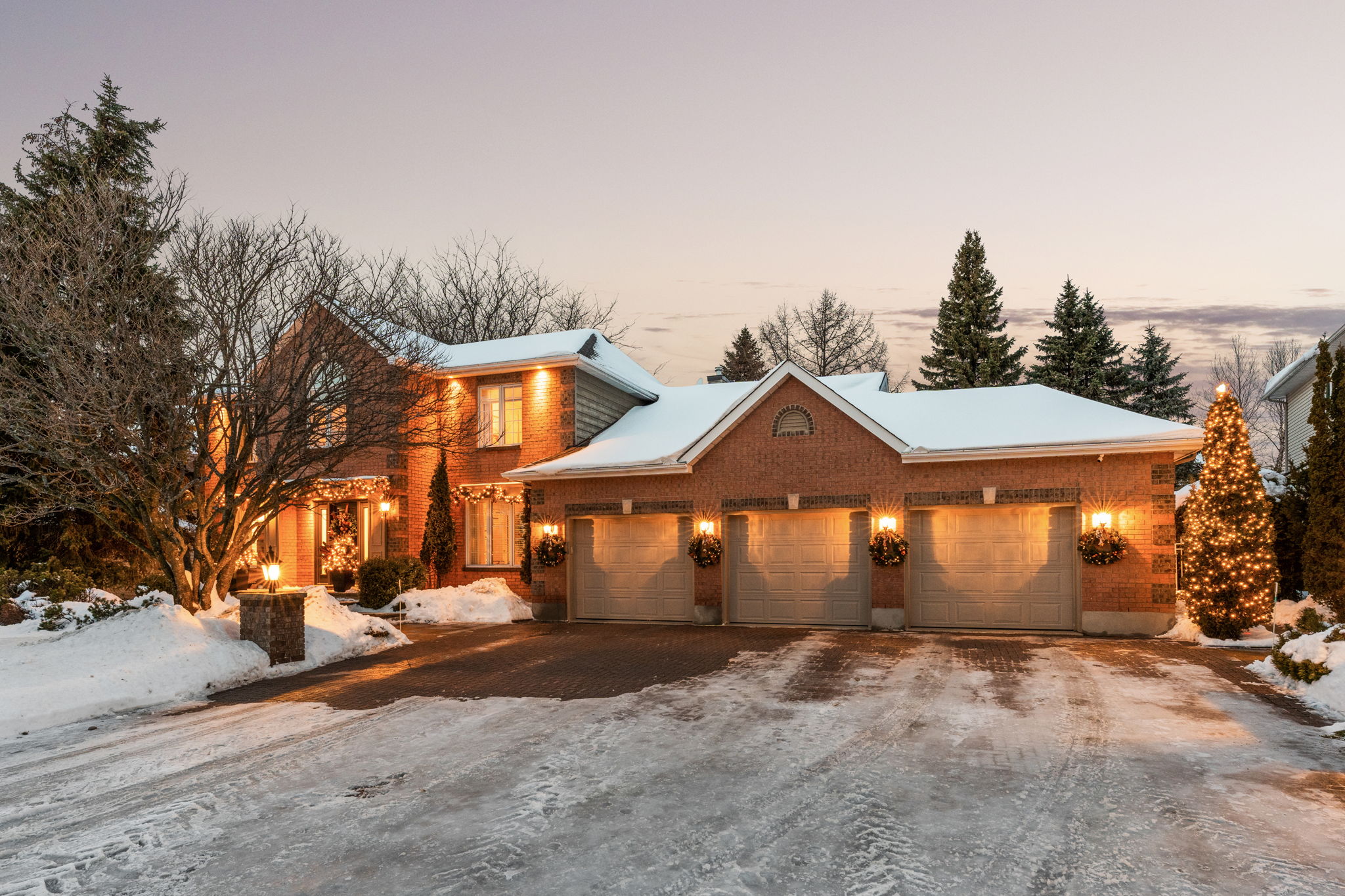 Upon entry, you are welcomed by a stunning hardwood staircase & a classic cross-hall design, unveiling a gracious den, formal living room, & intimate dining room accented by French doors-perfectly curated for both entertaining & everyday living. The heart of the home showcases a spectacular chef’s kitchen featuring an oversized island, premium appliances, & an impressive walk-in pantry. The adjoining breakfast area is warmed by a striking double-sided fireplace & provides seamless access to the breathtaking backyard oasis, creating an effortless flow for indoor-outdoor living. Just off the kitchen, the beautifully appointed great room is inundated with natural light, offering a welcoming space to unwind or entertain family & friends. A highly functional mudroom and laundry area feature expansive quartz countertops, abundant storage, & a full refrigerator & freezer, leading seamlessly to the impressive three-bay garage complete with newly epoxied floors and fresh paint.The upper level offers three generously proportioned bedrooms & a serene primary suite retreat, highlighted by a luxurious ensuite featuring a custom oversized shower and freestanding soaker tub-designed to deliver a spa-inspired experience. A beautifully renovated main bathroom completes this level, blending timeless style with custom finishes. The thoughtfully finished lower level features a welcoming family room centred around a cozy gas fireplace, an additional bedroom, a newly renovated bathroom, & abundant storage-creating a versatile and refined space, perfect for guests or an in-law suite.
