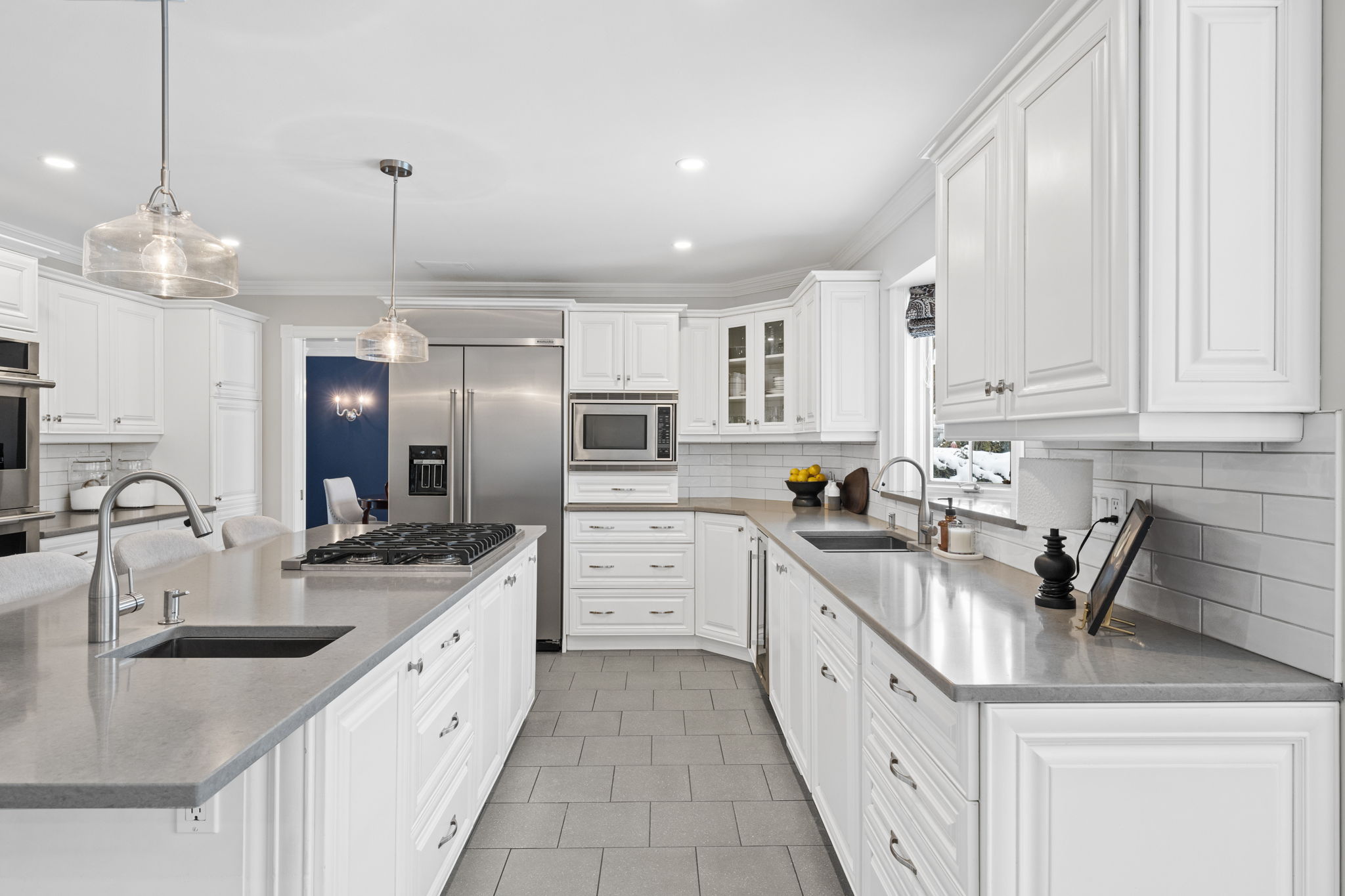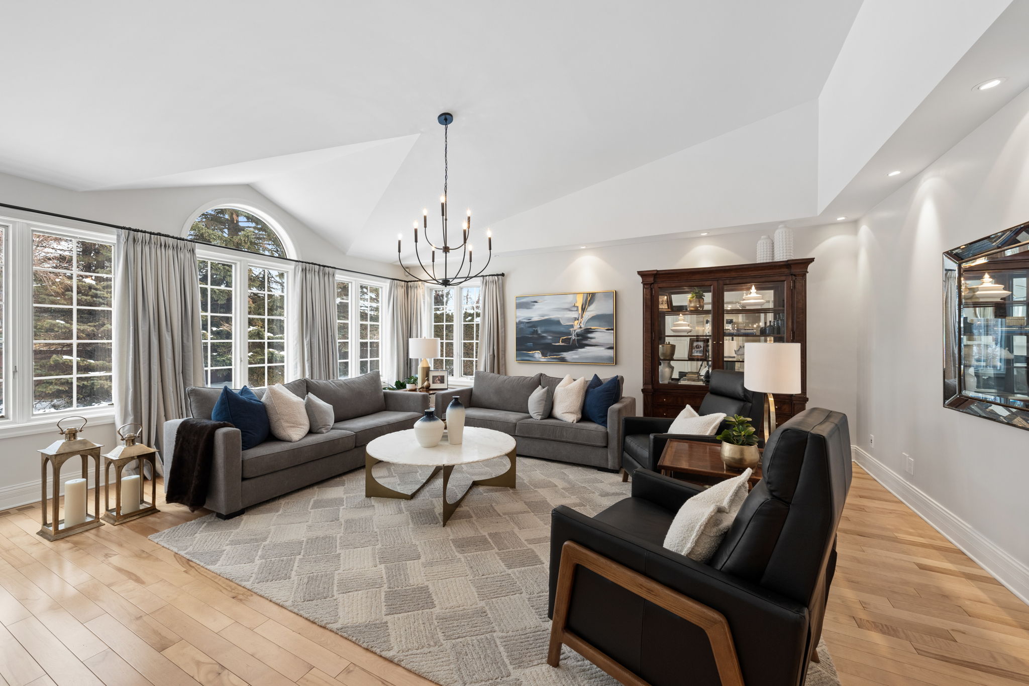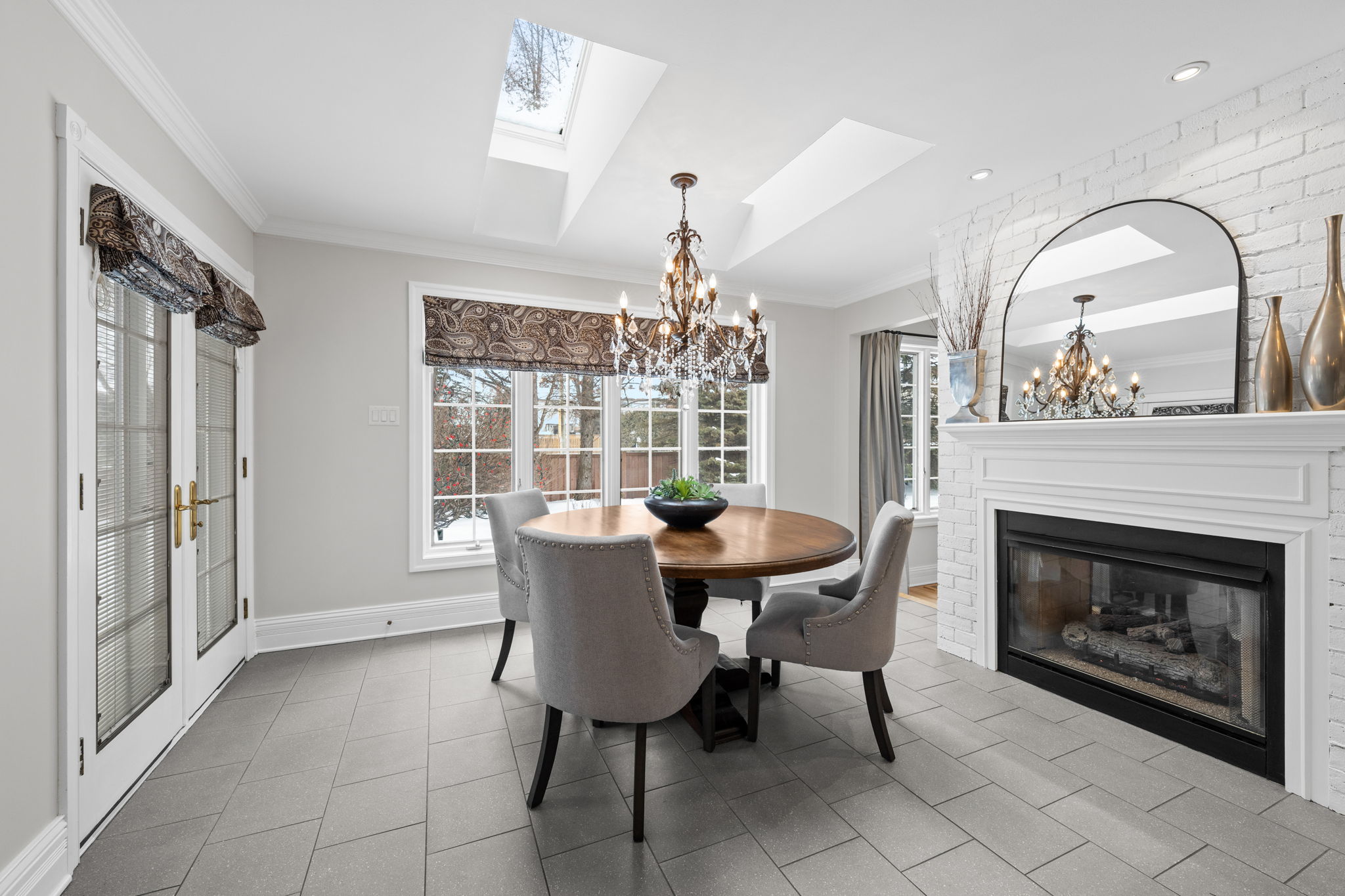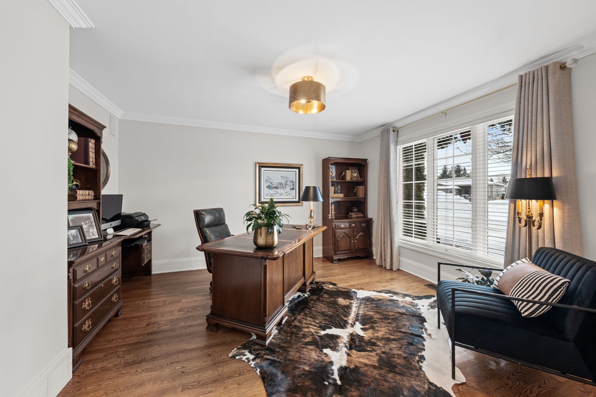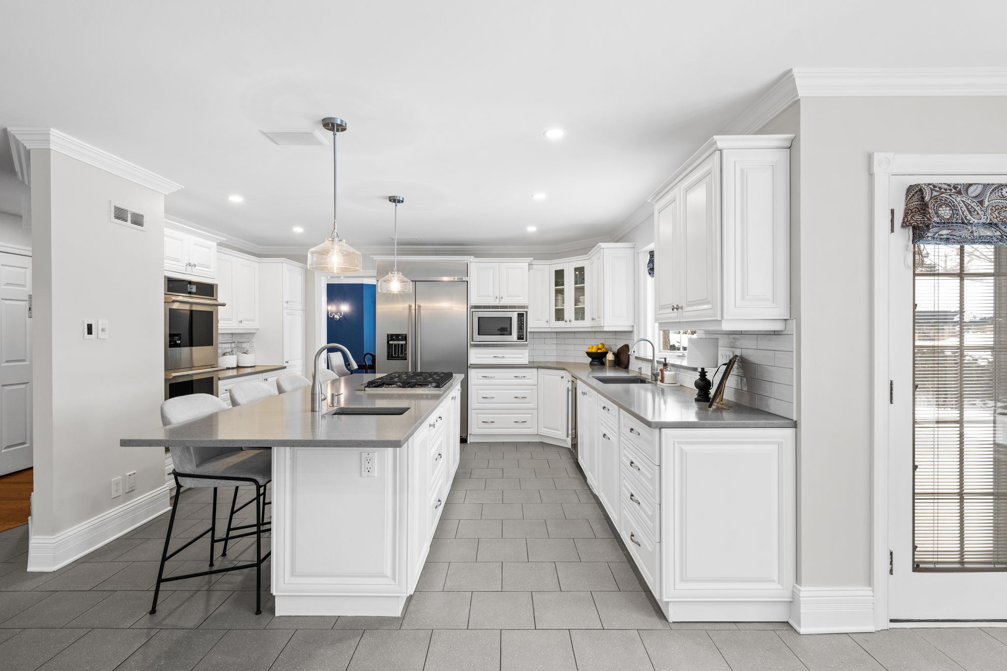 Upon entry, you are welcomed by a stunning hardwood staircase & a classic cross-hall design, unveiling a gracious den, formal living room, & intimate dining room accented by French doors-perfectly curated for both entertaining & everyday living. The heart of the home showcases a spectacular chef’s kitchen featuring an oversized island, premium appliances, & an impressive walk-in pantry. The adjoining breakfast area is warmed by a striking double-sided fireplace & provides seamless access to the breathtaking backyard oasis, creating an effortless flow for indoor-outdoor living. Just off the kitchen, the beautifully appointed great room is inundated with natural light, offering a welcoming space to unwind or entertain family & friends. A highly functional mudroom and laundry area feature expansive quartz countertops, abundant storage, & a full refrigerator & freezer, leading seamlessly to the impressive three-bay garage complete with newly epoxied floors and fresh paint.The upper level offers three generously proportioned bedrooms & a serene primary suite retreat, highlighted by a luxurious ensuite featuring a custom oversized shower and freestanding soaker tub-designed to deliver a spa-inspired experience. A beautifully renovated main bathroom completes this level, blending timeless style with custom finishes. The thoughtfully finished lower level features a welcoming family room centred around a cozy gas fireplace, an additional bedroom, a newly renovated bathroom, & abundant storage-creating a versatile and refined space, perfect for guests or an in-law suite.
