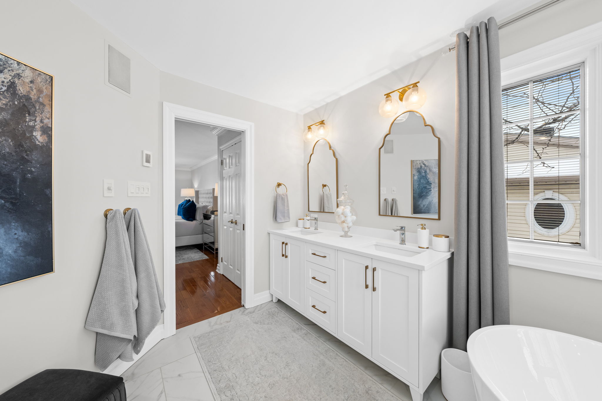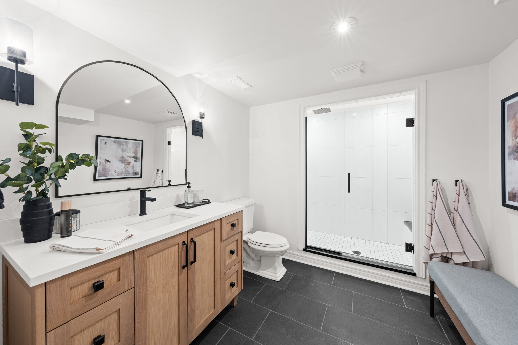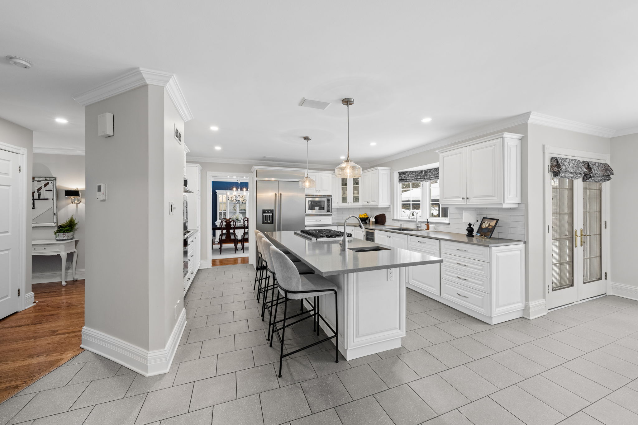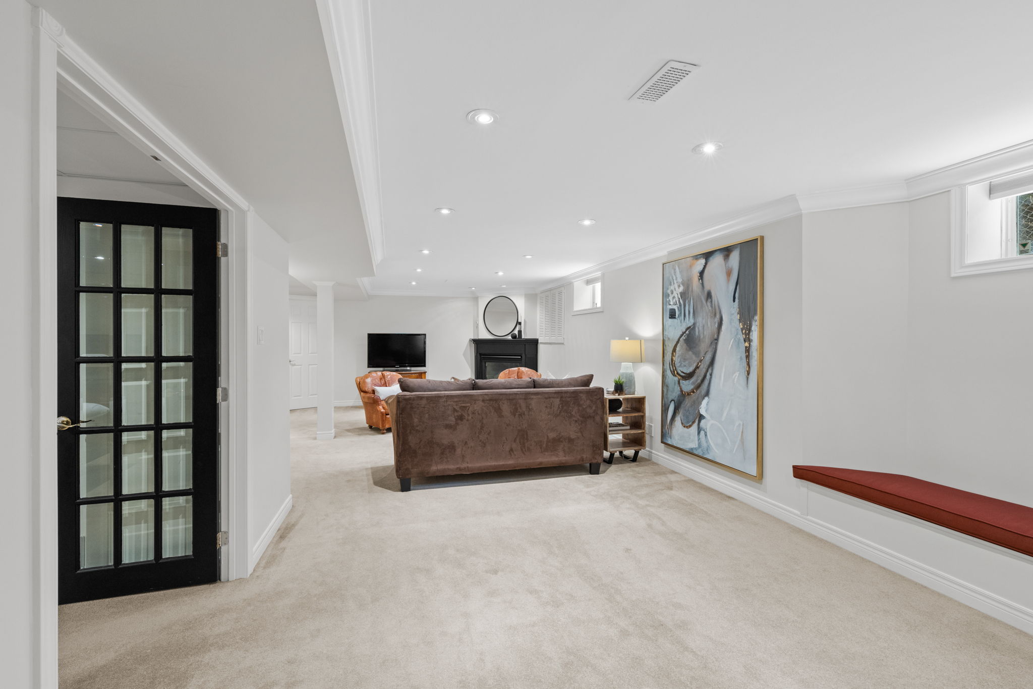 Upon entry, you are welcomed by a stunning hardwood staircase & a classic cross-hall design, unveiling a gracious den, formal living room, & intimate dining room accented by French doors-perfectly curated for both entertaining & everyday living. The heart of the home showcases a spectacular chef’s kitchen featuring an oversized island, premium appliances, & an impressive walk-in pantry. The adjoining breakfast area is warmed by a striking double-sided fireplace & provides seamless access to the breathtaking backyard oasis, creating an effortless flow for indoor-outdoor living. Just off the kitchen, the beautifully appointed great room is inundated with natural light, offering a welcoming space to unwind or entertain family & friends. A highly functional mudroom and laundry area feature expansive quartz countertops, abundant storage, & a full refrigerator & freezer, leading seamlessly to the impressive three-bay garage complete with newly epoxied floors and fresh paint.The upper level offers three generously proportioned bedrooms & a serene primary suite retreat, highlighted by a luxurious ensuite featuring a custom oversized shower and freestanding soaker tub-designed to deliver a spa-inspired experience. A beautifully renovated main bathroom completes this level, blending timeless style with custom finishes. The thoughtfully finished lower level features a welcoming family room centred around a cozy gas fireplace, an additional bedroom, a newly renovated bathroom, & abundant storage-creating a versatile and refined space, perfect for guests or an in-law suite.