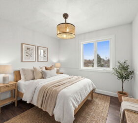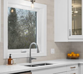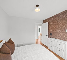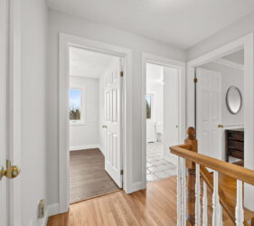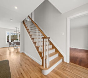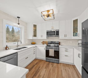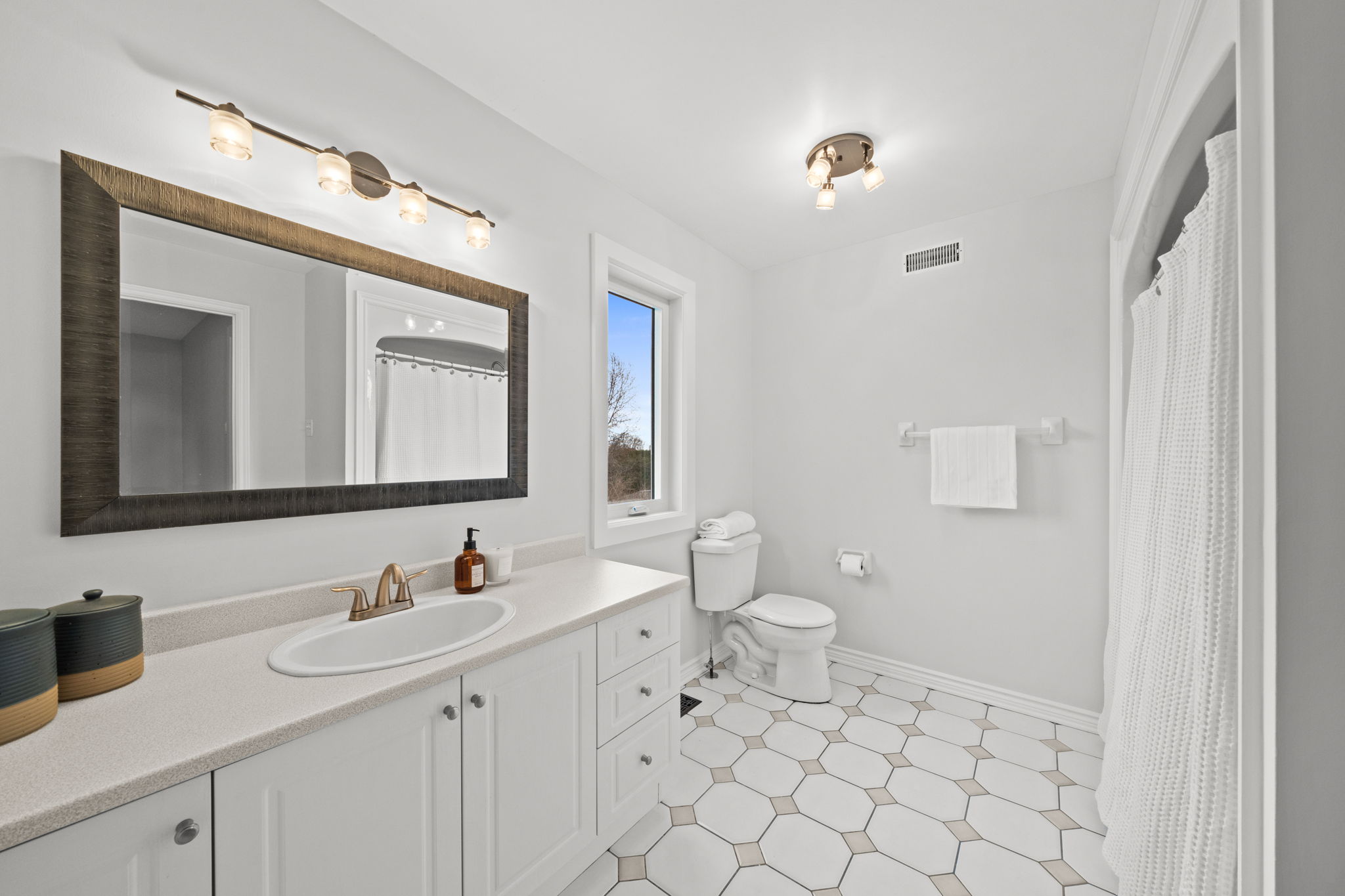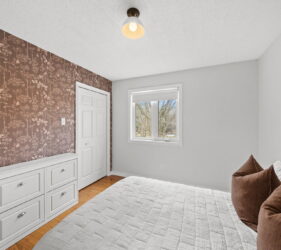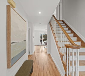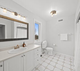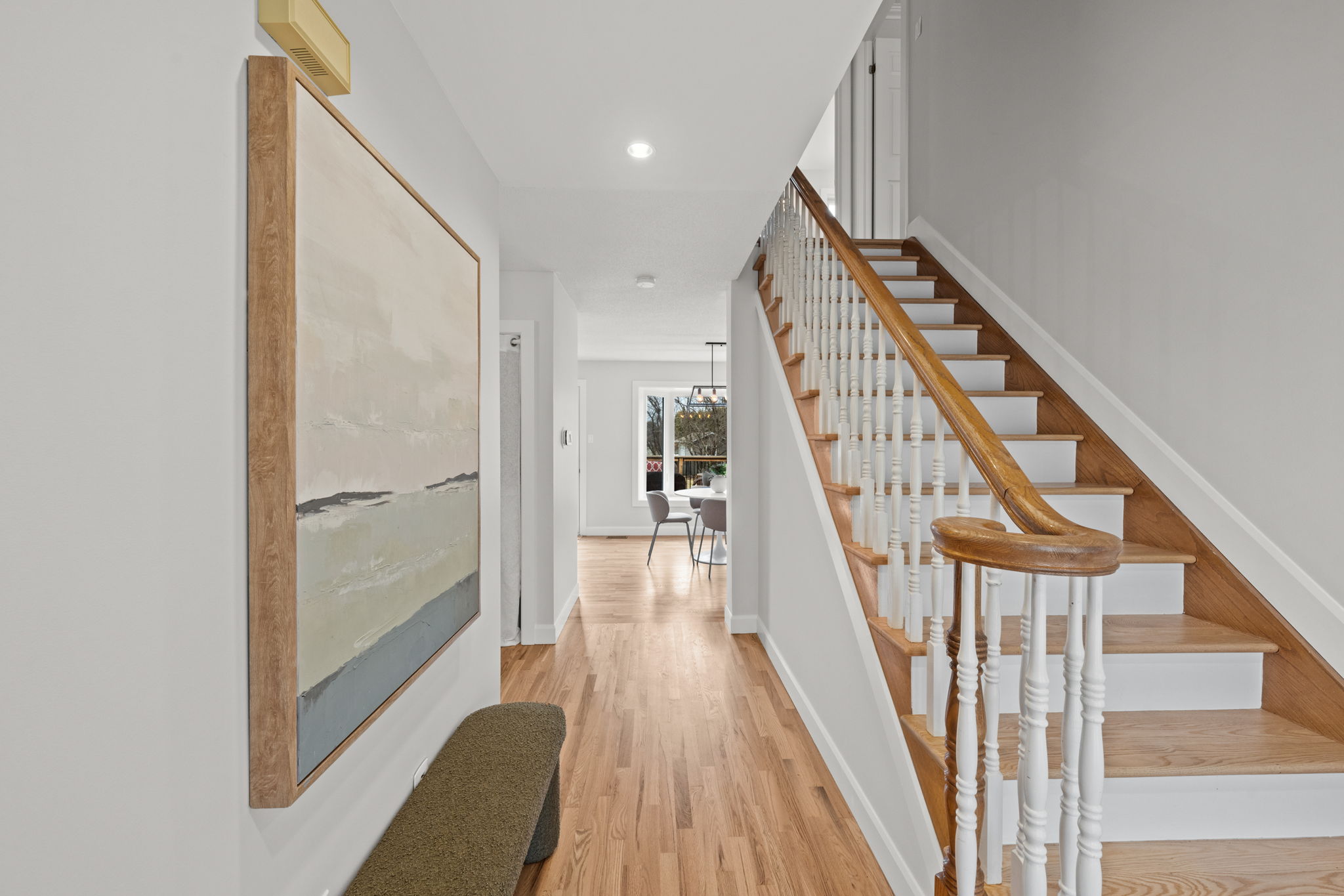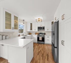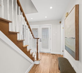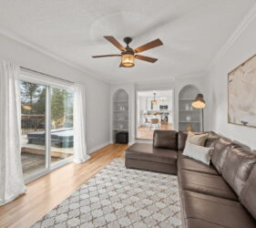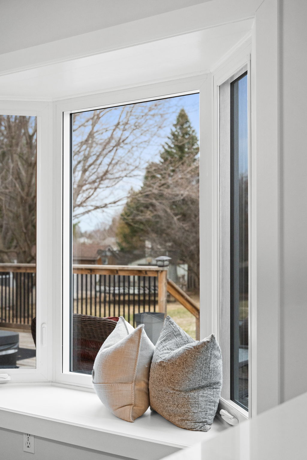 Upon entering, you are greeted by newly refinished hardwood floors & a bright, contemporary feel that carries throughout the home. Oversized newer windows & doors flood the home with natural light, while a soft, neutral palette enhances the home’s refined & cohesive aesthetic. The stunning custom-designed kitchen immediately captures your attention, featuring quartz countertops, stainless steel appliances, & a sophisticated backsplash, an elegant space designed for both everyday living & effortless entertaining. A cozy dining area just off the kitchen offers beautiful views of the backyard & direct access outdoors, creating a seamless indoor-outdoor lifestyle. The kitchen flows effortlessly into the warm & inviting living room, anchored by a cozy wood stove, perfect for relaxed evenings. The main floor also offers a lovely formal dining room, easily adaptable as a den or home office, along with the added convenience of a main floor laundry closet & direct access to the double car garage. The upper level features a generous primary retreat with a walk-in closet, complemented by two additional well-proportioned bedrooms & a well-appointed main bathroom.