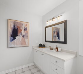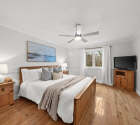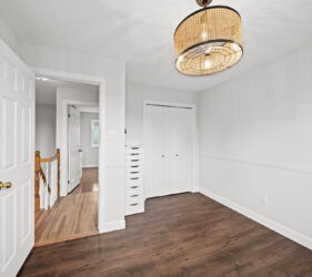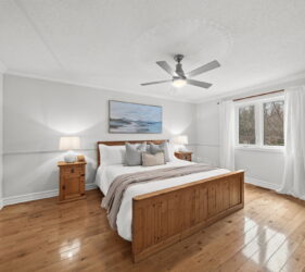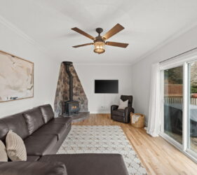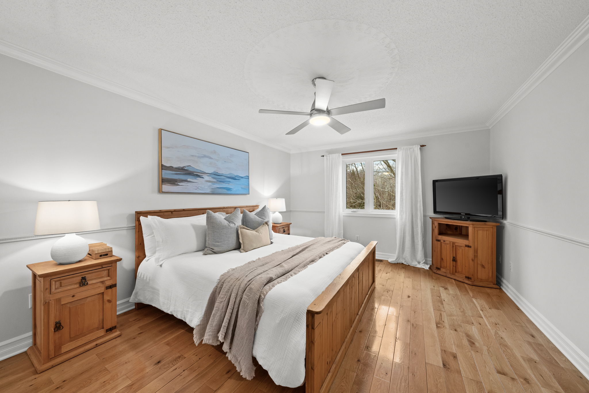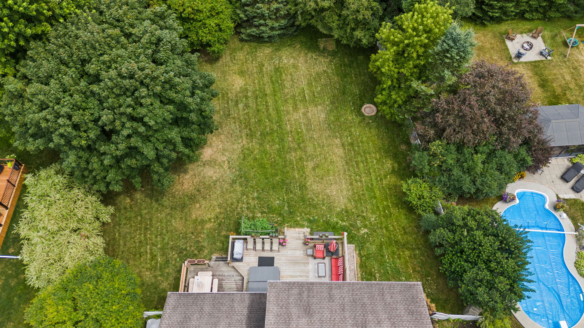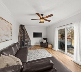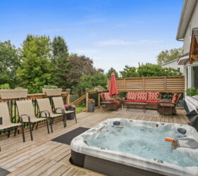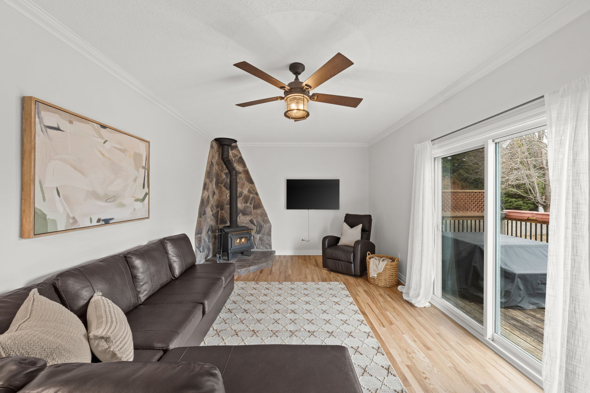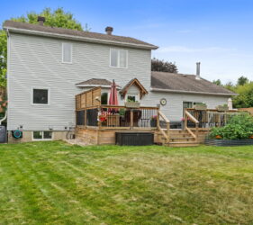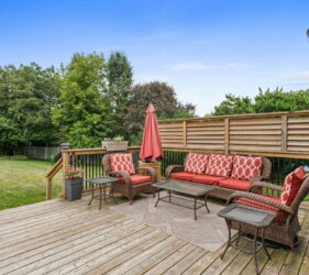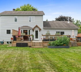 Outdoors, the private, fully fenced backyard offers a true retreat with generous green space. Mature landscaping & an expansive deck create an inviting setting for relaxing or entertaining.