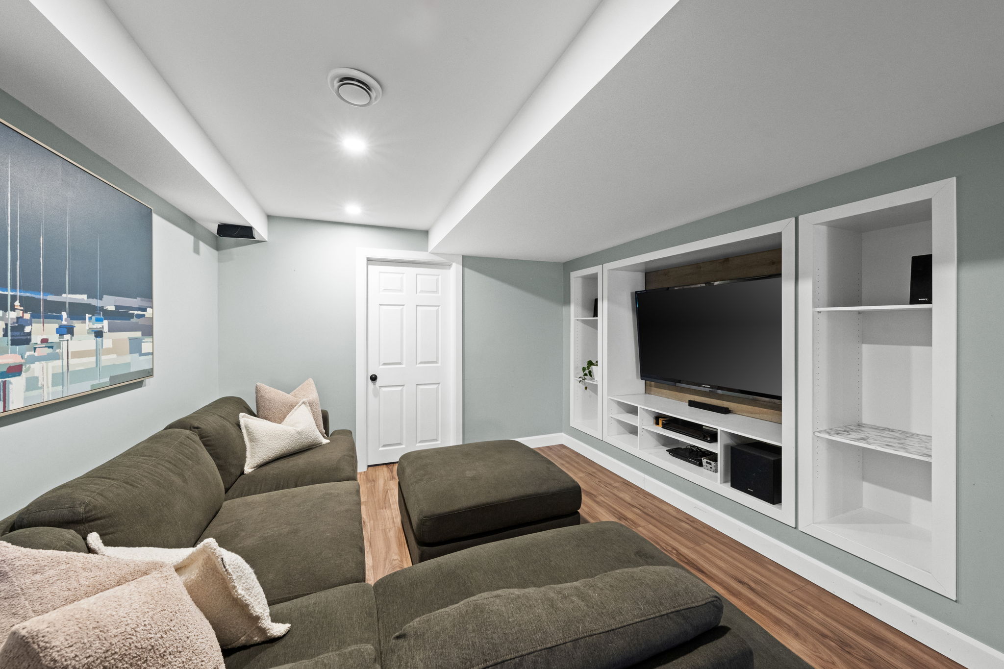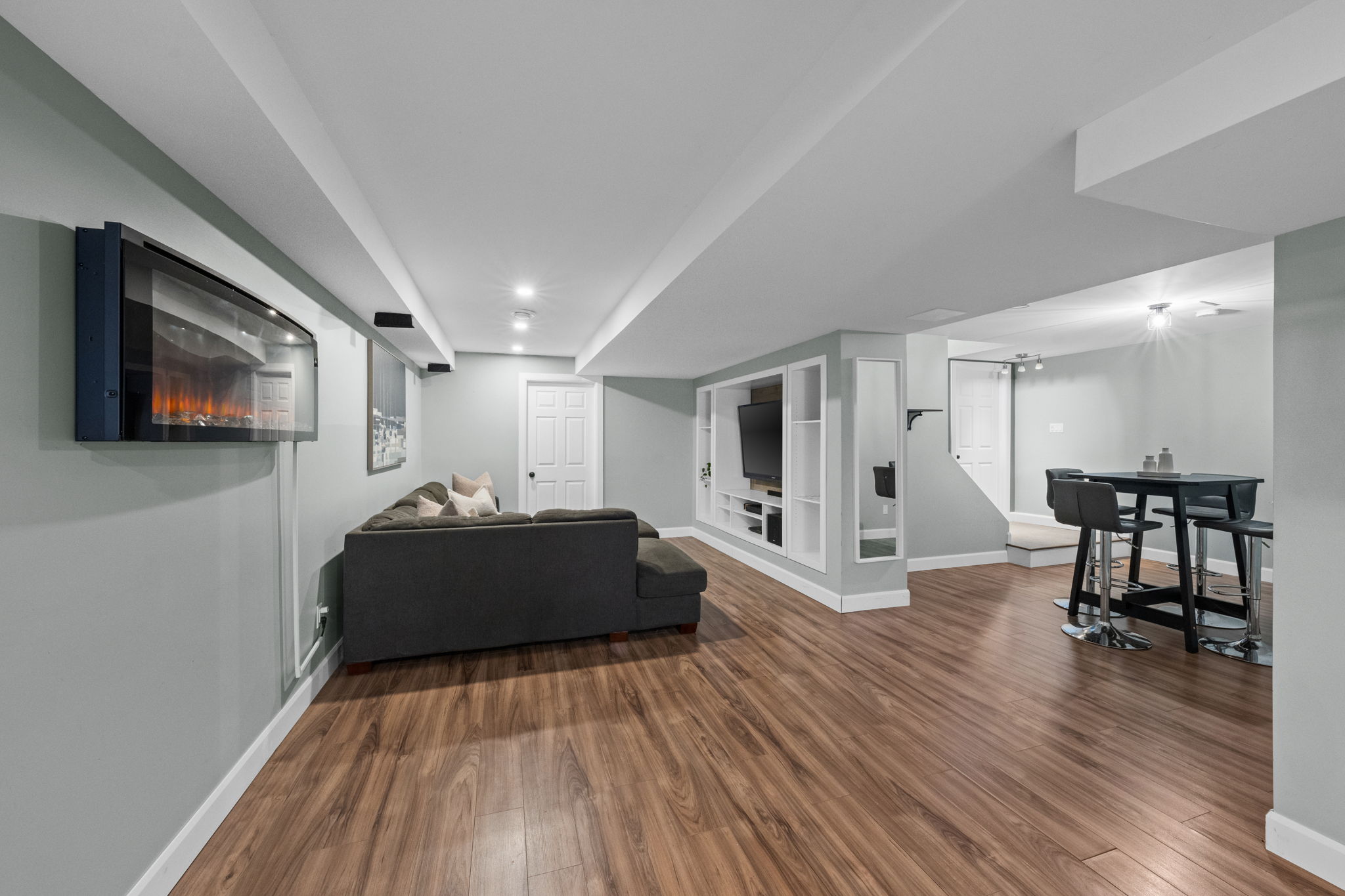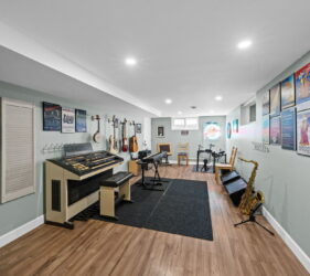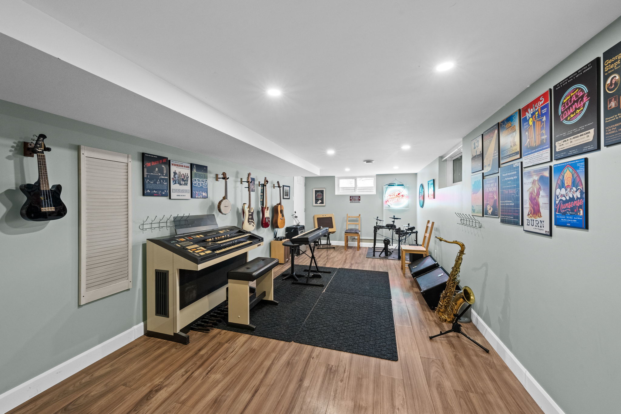 The professionally finished basement extends the living space with a comfortable family room, dedicated music room, & versatile flex space-ideal for a home gym, office, or playroom-along with ample storage.